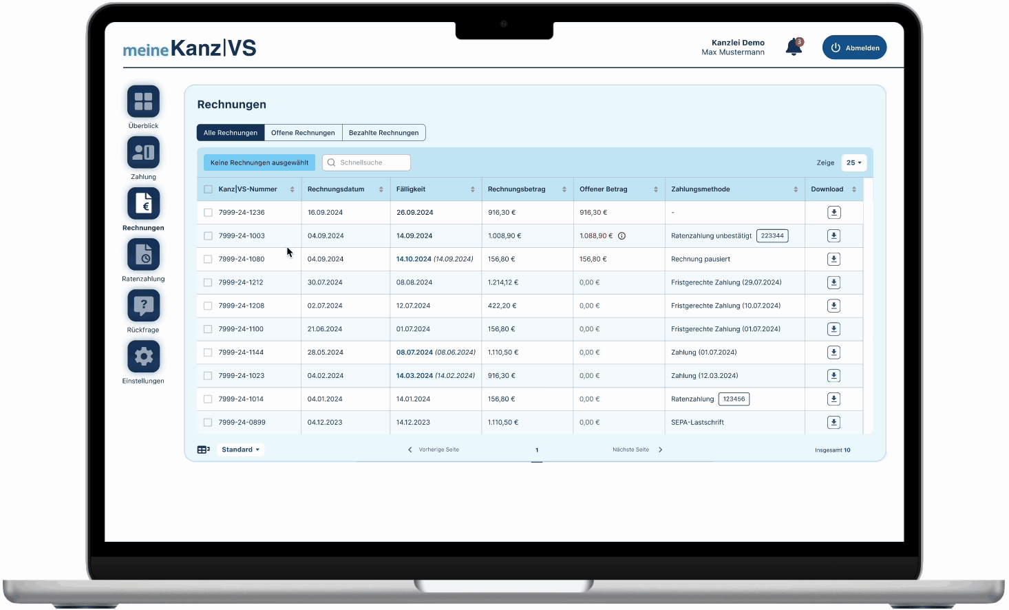 Zahlungsarten und Rechnungsstatus sind nun noch einfacher einsehbar. Die optimierte Darstellung sorgt für eine angenehme und effiziente Nutzung.