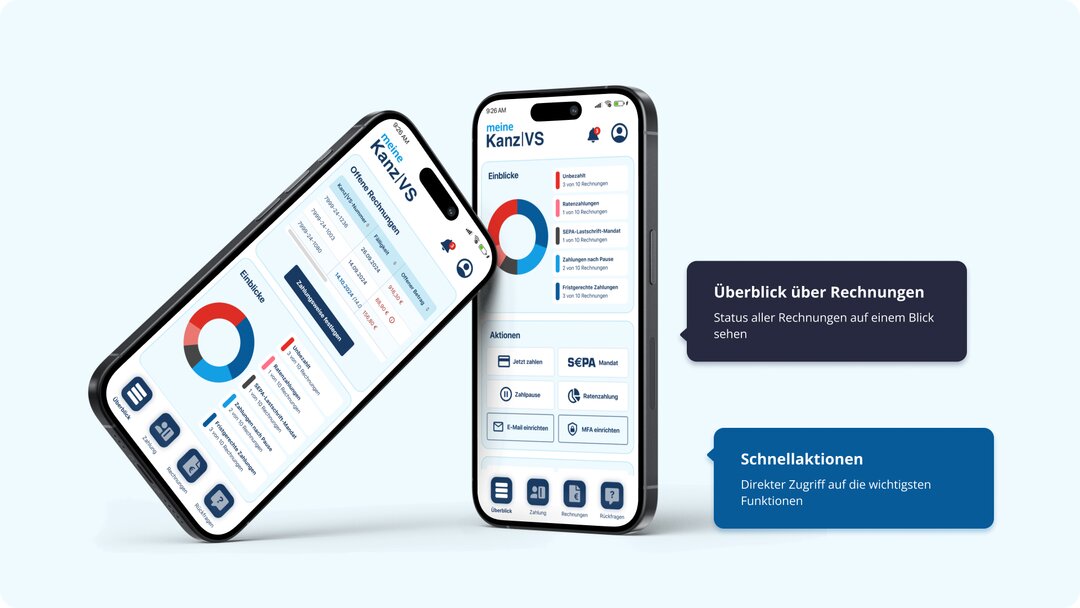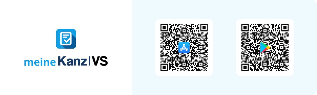 Laden Sie sich „meine KanzVS“ direkt im App Store oder bei Google Play herunter – und profitieren Sie jederzeit und überall von einem einfachem Zugriff auf Ihre Rechnungen, flexiblen Zahlungsoptionen, Echtzeit-Benachrichtigungen und einer komfortablen Verwaltung.